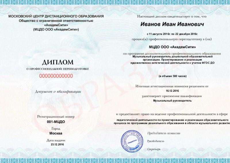 - Диплом о профпереподготовке после успешного прохождения итогового тестирования.