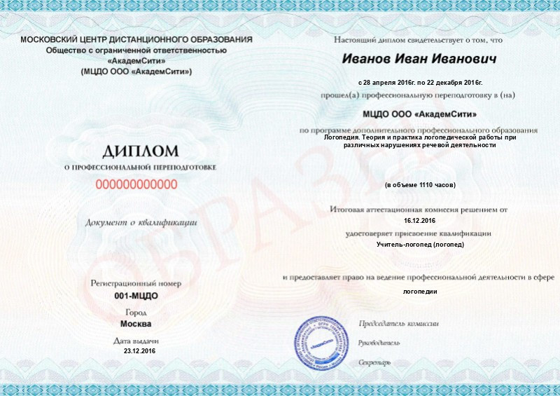 - Диплом о профпереподготовке после успешного прохождения итогового тестирования.