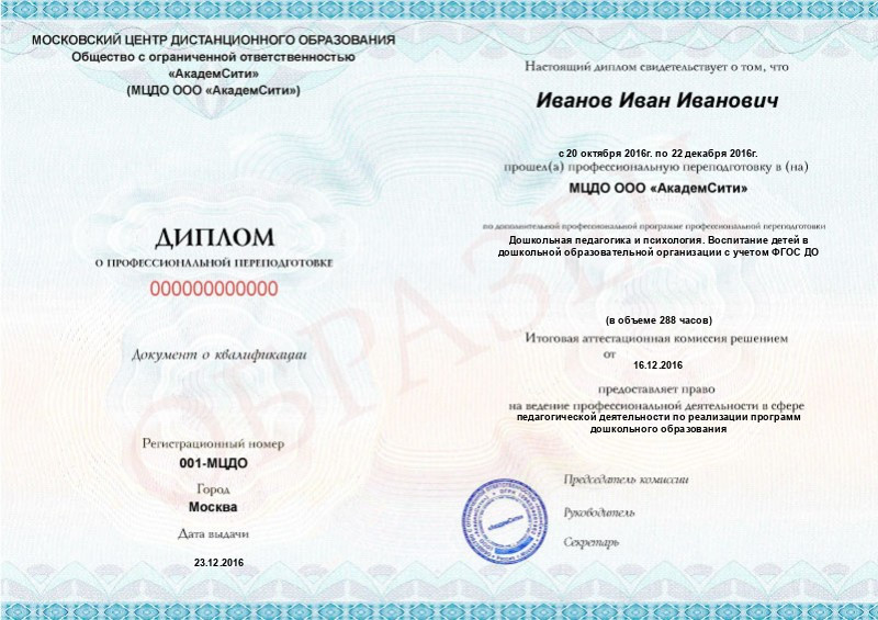 - Вы получаете диплом, который открывает вам двери ДОУ и других учреждений, где ведётся работа с дошкольниками;